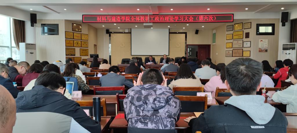 4月26日下午,材料与建造学院党总支召开2023年第六次全体教职工大会。材料与建造学院全体教职工参加会议,会议由学院党总支书记伍志强主持。