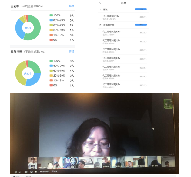 老师们的辛勤付出也得到了同学们的高度赞扬。来自化工181班 赵艳萍说:跟以往的传统教学相比,防疫期间的在线教学对于老师和同学都是全新的挑战。在线教学中从前期的教学准备过程中的学生名单核对,到授课过程中大家争相给出反馈建议,让课程不断改进,教学工作的一步步有序推进,都离不开老师们的辛勤付出和同学们的全力配合,也离不开辅导员老师的强化管理,教学视频的录制,在线答疑、直播录播两结合以及课后及时巩固等,都极大地提高了同学们学习的效率,希望大家一起努力,共度难关。