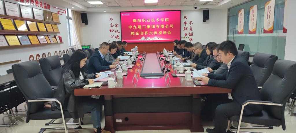 2025年11月5日,绵阳职业技术学院党委常委、副校长、建筑工程学院院长郭晓飞率领团队前往中九建工集团有限公司,开展校企产教融合深度合作专项交流。本次交流基于双方已初步拟定的战略合作框架协议及教科研团队建设研究规划,旨在通过全面沟通,进一步细化与完善合作内容,推动产教融合走向深入。中九建工集团有限公司董事长谢从玉及公司相关代表参与座谈。