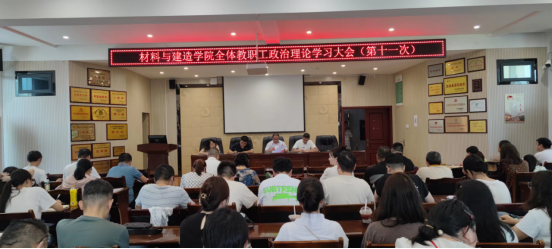 7月10日下午,材料与建造学院党总支召开2024年第十一次全体教职工大会。材料与建造学院全体教职工参加会议,会议由学院党总支副书记、院长贾陆军主持。