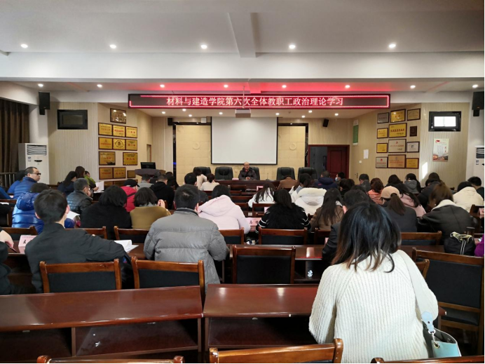 11月25日下午,材料与建造学院在材料大楼202会议室召开了全体教职工第六次政治理论学习大会。材料与建造学院副院长单荣华及全体教职工参加了会议,会议由材料与建造学院副院长单荣华主持。