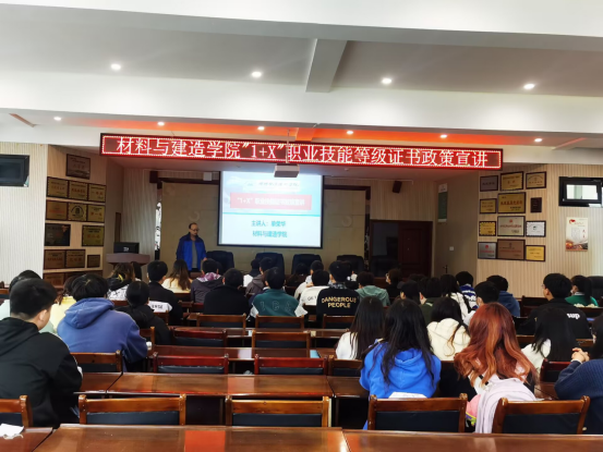 为进一步贯彻落实《国家职业教育改革实施方案》《关于推动现代职业教育高质量发展的意见》等文件精神,推动“1+X证书”试点的相关工作,材料与建造学院于11月15日在材料大楼202会议室举办“1+X”职业技能等级证书政策宣讲会,宣讲会由副院长单荣华主持。